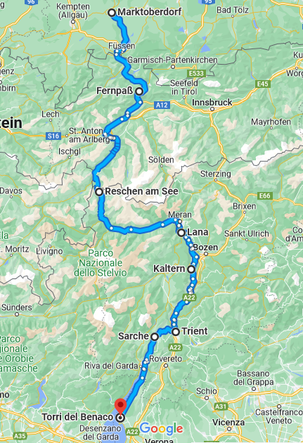 Von Marktoberdorf aus über den Fern- und Reschenpass geht es nach Südtirol.