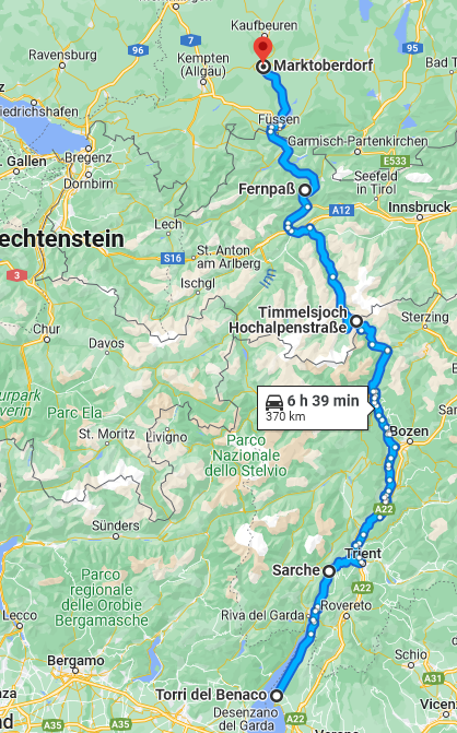 Bis zu den Alpen mit dem Motorrad auf dem Anhänger und danach die Alpen mit dem Motorrad überqueren. Kurzerhand wurde noch eine Unterkunft in Marktoberdorf