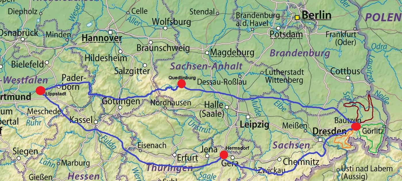 Ein Blick auf die Deutschlandkarte zeigt, dass es im Osten noch viele Orte gibt, die wir bisher nicht besucht haben.
