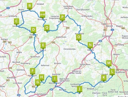 Da das Motorradfahren in diesem Sommerurlaub etwas zu kurz gekommen ist, brechen wir in der letzten Woche kurzfristig noch zu einer kleinen Tour auf. Für drei Tage quartieren wir uns in einem kleinen Landhotel in Ulrichstein am Vogelsberg ein und touren durch Vogelsberg, Rhön und Spessart.