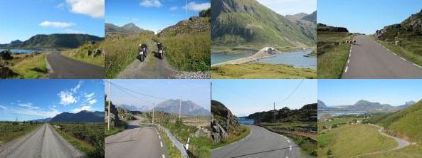 Das Motorradfahren auf den Lofoten ist ein Genuss für alle Sinne. Fast alle Straßen führen an der Küste entlang. Sie sind oft kurvig und bieten immer herrliche Aussichten. Zu der einen Seite hat man den Blick auf die blauen Fjorde oder das offene Meer, auf der anderen Seite blickt man zu den Bergspitzen, die steil in den Himmel ragen.