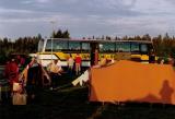 1. Tag: Für mich begann die Tour in Dortmund. Dort konnte ich in den Bus zusteigen, der in Frankfurt gestartet war. An diesem Tag fuhren wir bis kurz hinter die dänische Grenze, wo wir dann die "Zeltpaare" bildeten und eine kurze Einweisung im Zeltaufbau bekamen. Nach ein paar Tagen waren wir ein eingespieltes Team und brauchten nur noch ein paar Minuten zum Auf- und Abbauen.