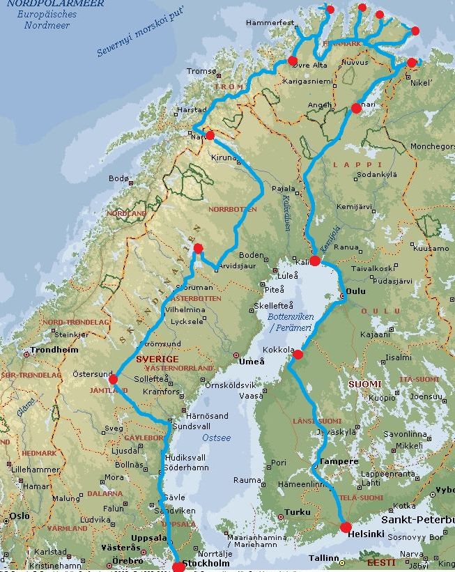 - Tag 01: Anreise nach Travemünde (385 km), 27h Fähre der Finnlines nach Helsinki